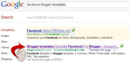 Kembali ke topik,disini saya menemukan sebuah template yang tampilannya hampir sama dengan facebook, jika para blogger melakukan search engine di google dengan kata kunci "facebook blogger templates" maka anda akan diarahkan oleh mesin pencari Google kesini blogtemplate4u.com lihatlah gamber dibawah ini: